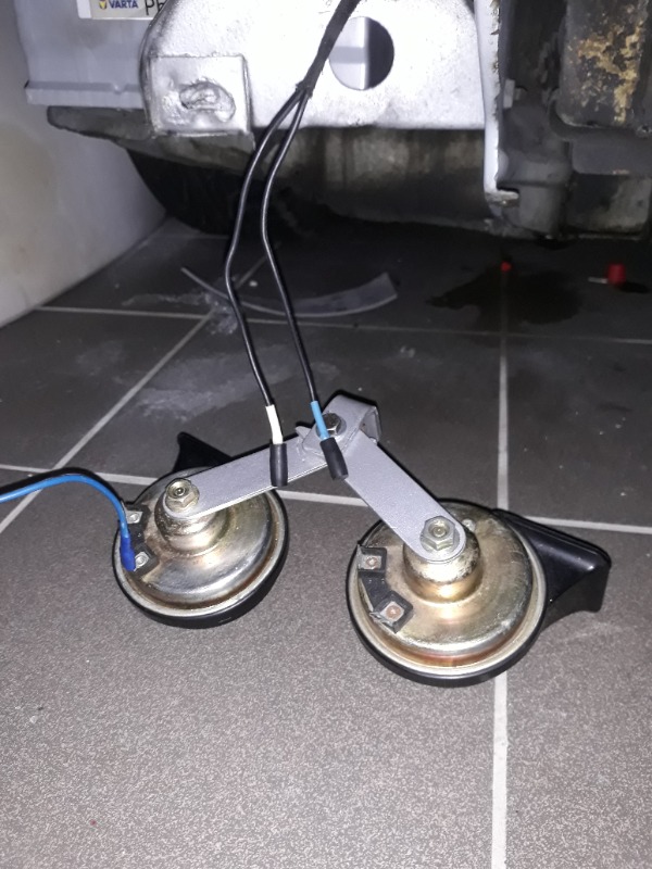 Für die zweite Hupe habe ich ein blaues u.ein weißes. Ich muss dann noch eine Brücke schaffen.Ich glaube das es keine orginale ist.V.G.Joachim