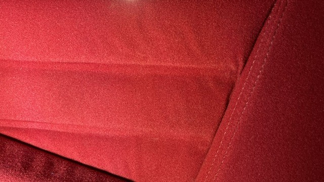 Zum Vergleich: das Velour war an die Seiten mittels eines thermischen Prozess "geklebt" und durch die Einpressung ergab sich die Struktur. Mein Sattler hat den neuen Stoff (die unterschiedliche Farbe ergibt sich aus unterschiedlichen Lichteinfall) durchgenäht, sodass die Struktur nicht nur erhalten blieb, sondern sich auch deutlich konturierter abzeihnet.