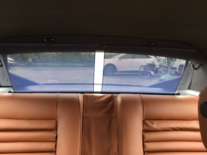 Nachteil: Sicht nach hinten nun genau 0,00. Es ist alles nur noch weiss durch die Spiegelung der Lamellen in der extrem flachen Heckscheibe. Im Tunnel oder im Keller sieht man ein bischen nach hinten und kann Hindernisse erahnen. Rückwärts einparken jetzt nur noch nach Gehör, zumal mein rechter Aussenspiegel erst im Juni eingebaut werden kann. Spurwechsel im Verkehr jedesmal mit Bangen und Hoffen. Derzeit behelfe ich mir mit dem Kosmetikspiegel der rechten Sonnenblende, um durch das hintere, rechte Seitenfenster Dampfwalzen oder 30-Tonner im letzten Moment noch erkennen zu können. Oder auch Radfahrer. Insgesamt eine Katastrophe.