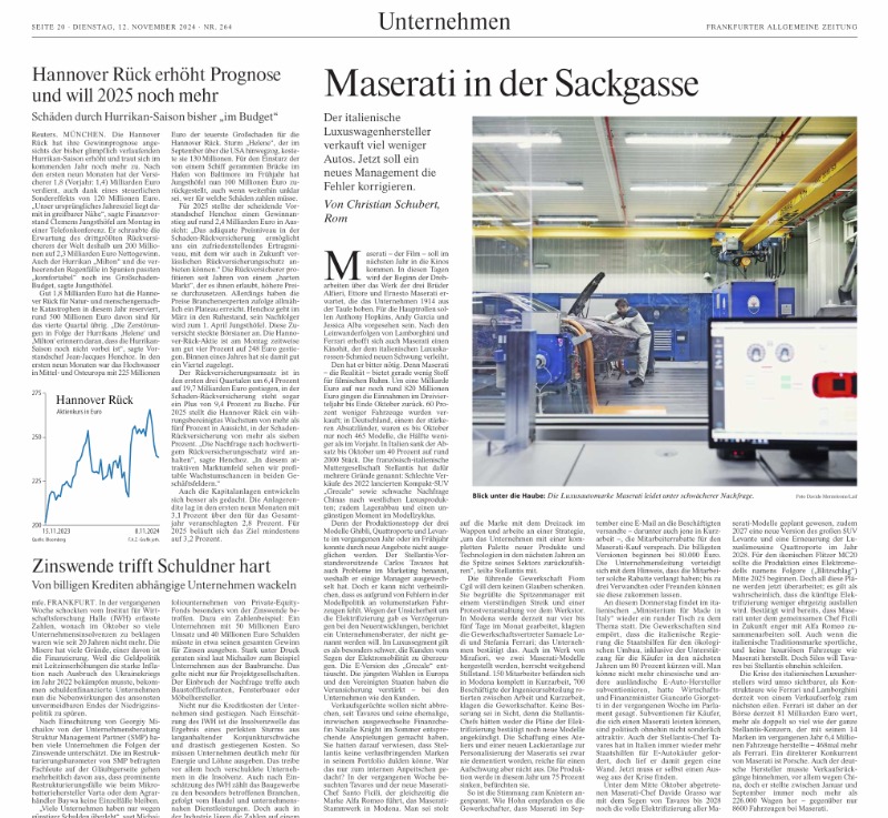 E- Maseratis will keiner und die Verkäufe haben sich letztes Jahr halbiert. usw.
