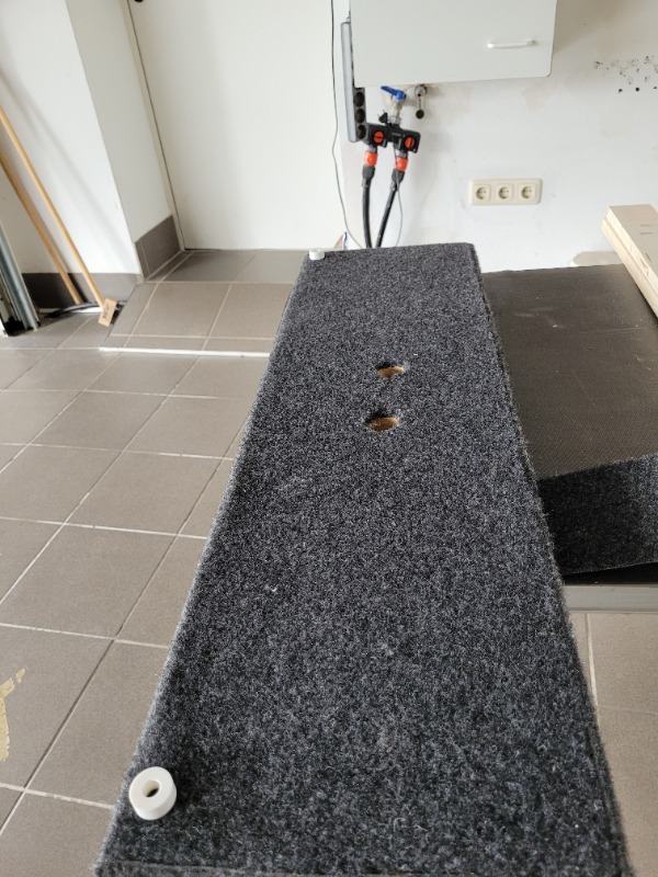 02 Juni 2023 20:55ich habe mir ein 6mm Sperrholzbrett mit den entsprechenden Maßen geschnitten, in der Mitte mit der Lochsäge ein Fingerloch gesägt und das Brett mit dem Original Kofferraumfilz bezogen. Den Filz habe ich im Loch sternförmig eingeschnitten und nach innen verklebt dadurch ist kein Holz sichtbar. Da ich eine Westfalia AHK habe legt sich das Abdeckbrett hinten auf das innere Gegenlager der Kupplung und nach vorne habe ich 2 Puffer mit passenden Höhenmaß montiert das ein glatter Boden entsteht. Durch das genaue Maß und der Filzverkleidung sitzt die Abdeckung schön stramm und federt nicht durch.