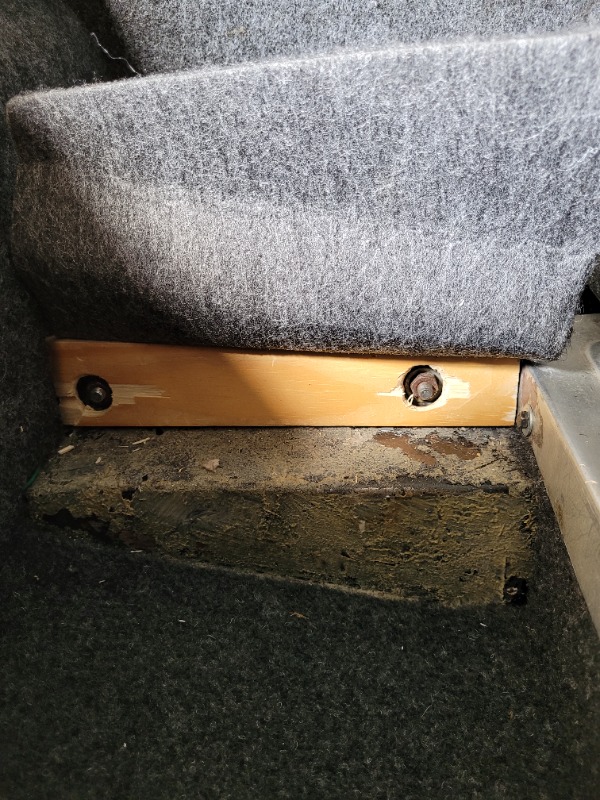 Die 2 Stöpsel in Form zweier Motorhauben- Auflagerschrauben mit Gummikopf? Gewinde im Holz mit Rampa- Muffe? Die Lösung ist entwicklungsfähig.