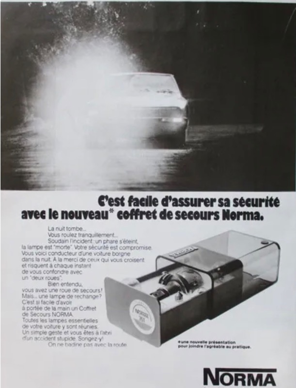 Schöne Werbung mit SM für Ersatz-Lampen von NORMA aus dem Jahr 1973