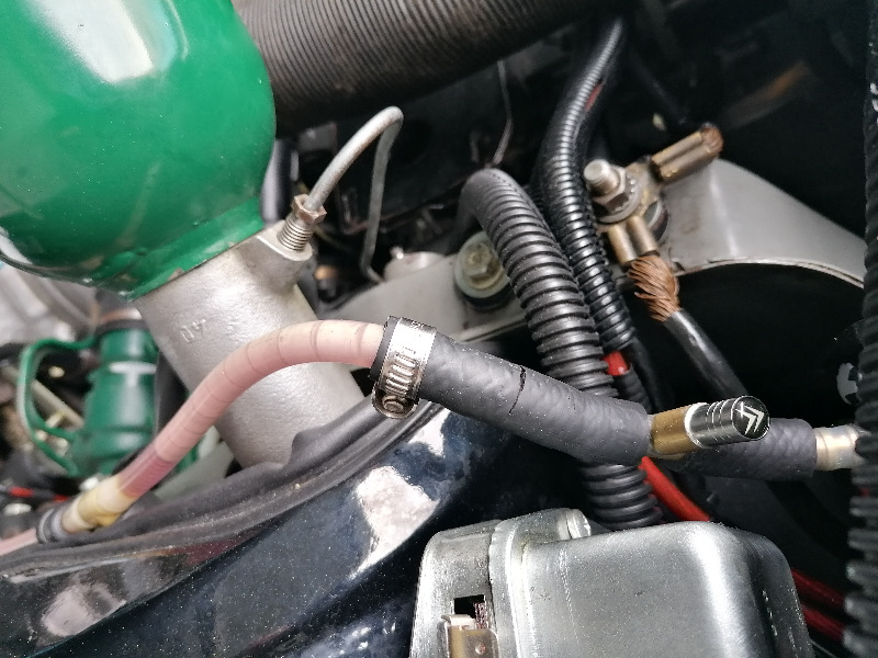 3. Verbindung zwischen Geberzylinder und Leitung mit Benzinschlauch herstellen, in der Regel sitzt das Ventil dann an der höchsten Stelle, wo sich nach füllen