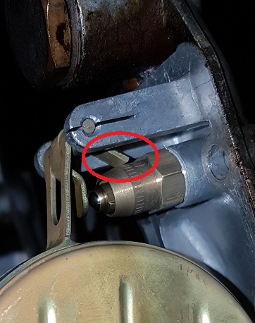 Zunge c bleibt unangetastet da sie bei Kontakt mit der federbelasteten Kugel im Nadelventil waagrecht zu diesem stehen muß.
