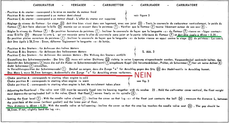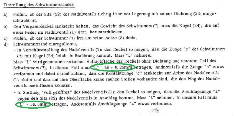 Das hat zur Folge, daß sich die obere Schwimmerposition um fast 4mm nach unten bewegt und sich somit ein zu niedriger Pegel in der Schwimmerkammer ergibt.