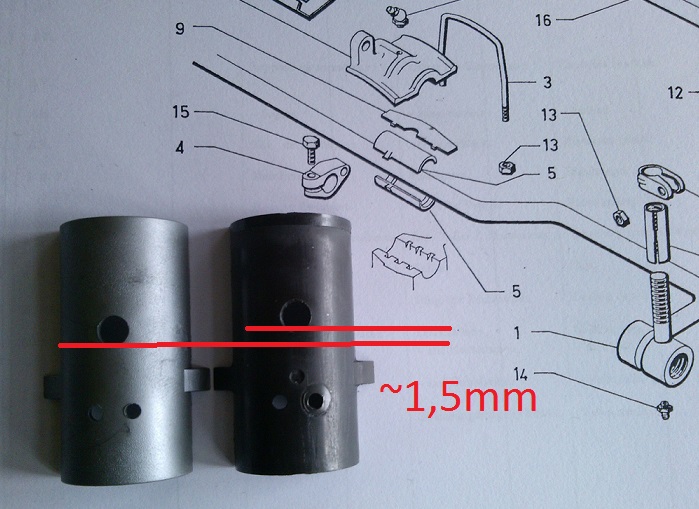 20 Apr. 2013 22:10Danke für die Info (merke: Immer erst Clubteileliste scannen). Werde mir einen Satz Federn bestellen und im nächsten Winter im Rahmen einer Vorderachsüberholung einbauen. Bis dahin tun's die selbstgedrehten Unterlegscheiben allemal.