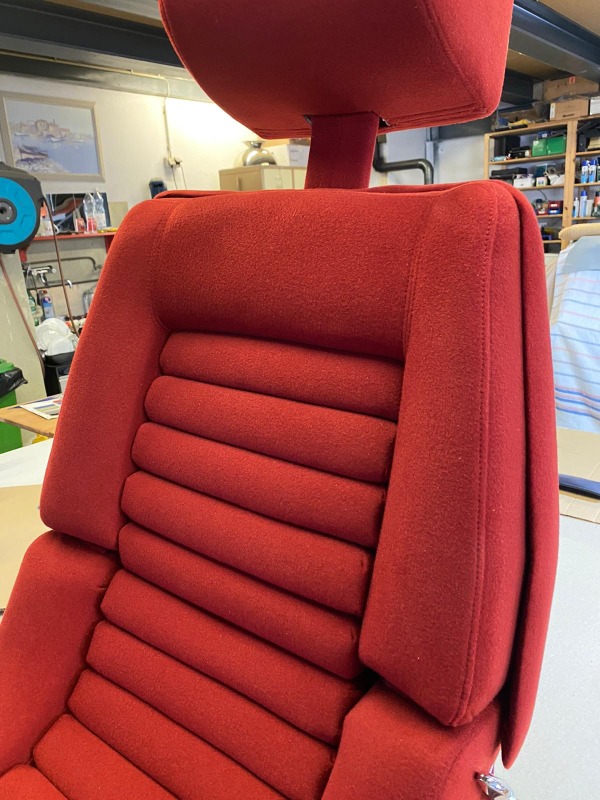 Was meist von den Sattlern falsch gemacht wird, sind die Seiten der Sitze. Mangels gescheiter Polster stopfen die die nur mit Zeug voll, dann hast Du eine wurstförmige Umrahmung der Sitzpfeifen. Und das ist halt nix