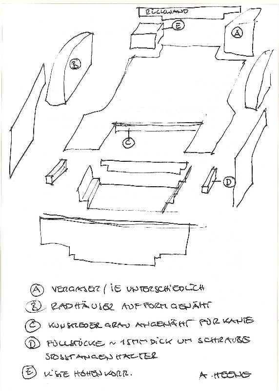 1 Paar Seitenteile hinter Radhaus zum Heck, wobei man das Trägermaterial aus Kunststoffplatten nachmachen sollte