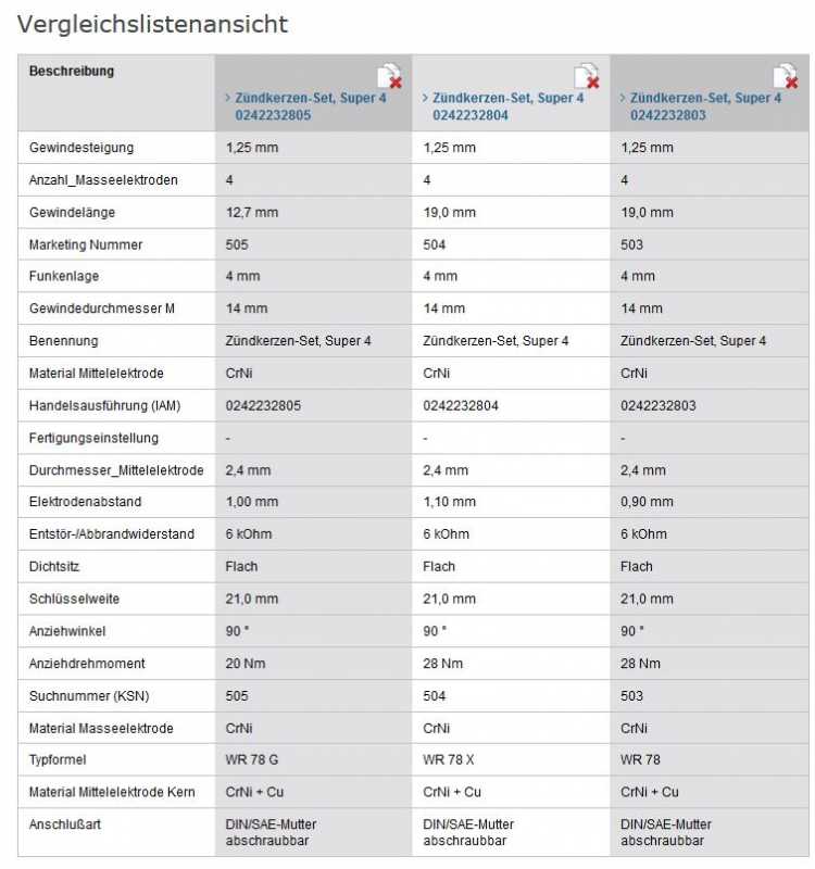 23 Mai 2016 23:46die für den SM geeignete Zündkerze "Bosch Super 4 WR78" (mit den 4 Elektroden und "Luftgleitfunken") gibt es in verschiedenen Ausführungen KSN 503, KSN 504, 505 - weiss jemand, wo da der Unterschied liegt?