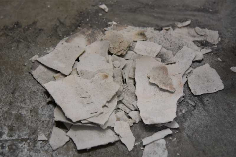 Zwischen Topf und Mantel war so ein Wärmeschutzmaterial. Fühlt sich an wie brüchiger Karton. Vibrationen vom Auspuff habe das Zeugs wohl schon vor längerem in Einzelteile zerlegt.E: Die Außenkammer liegt frei und gleich die erste Überraschung. Im Vergleich zu Andys Quertopf fehlen hier die zwei Lochrohre von den Abgängen. Soll mir aber recht sein, brauch ich die schon nicht rausflexen.