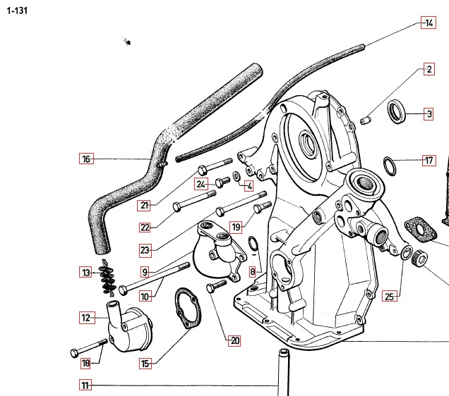 Bei mir war jetzt allerdings leider der kleine, anvulkanisierte Seitenstutzen aus dem Haupt-Kurbelgehäuseentlüftung-Schlauch herausgerissen, siehe Pos. 14 auf 1-131. Der Schlauch 14 zur Vergaser-Ölung baumelte also haltlos herum und gab dem Motor Falschluft. Glücklicherweise hatte dieser Nachsicht mit der Situation, wenn auch die Vergasereinstellung nicht recht stimmte (Leerlaufdrehzahl zu hoch und langsam abfallend).