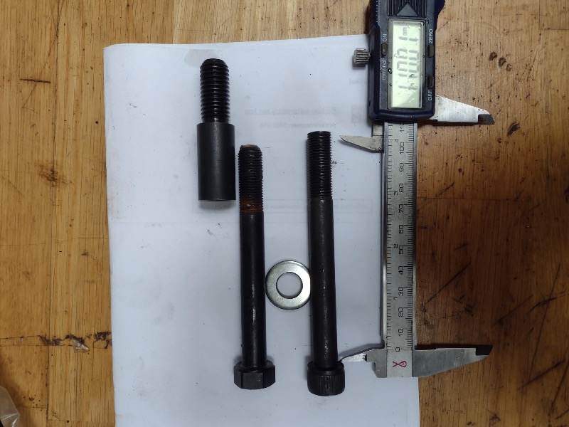 Die 105 mm Schrauben könnten min. 5 mm tiefer gehen. Habe mir 120 mm Zylinderschrauben 12.9 (3€/Stck) besorgt und auf 110 mm gekürzt. Die Schraube ließ sich 5 mm tiefer in die alte Buchse unten im Block