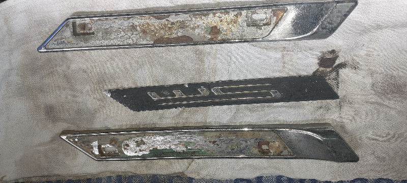 Emblem kann man gut restaurieren. Ausrichten, entlacken, neu verchromen, mattschwarz lackieren und mit Stofflappen um Schleifblock mit Nitroverdünnung den Schriftzug wieder freiwaschen.