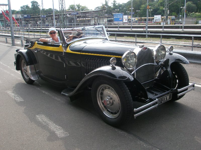 PS: Das Auto hinter mir ist ein 8-Zylinder Bugatti aus den Dreißigern, wir sind die Sachsen Klassik gefahren. Beide Fotos wurden in Berlin gemacht. Von dort sind wir nach Dresden zum Start gefahren.