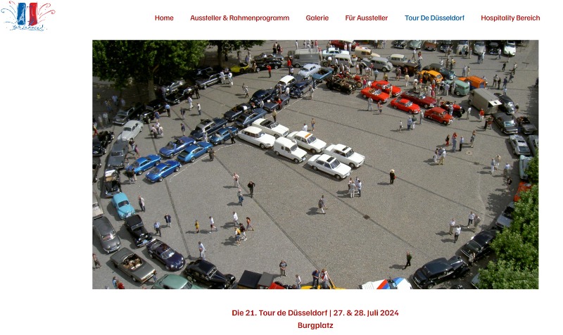 Wenn sich am 27. Juli morgens der Burgplatz mit rund 150 ausschließlich französischen Oldtimern füllt, strömen zahlreiche Besucher aus nah und fern in die Altstadt. Von hier aus starten die historischen Fahrzeuge, darunter seltene Klassiker der 30er und 40er Jahre und beliebte „Gangster-Limousinen“, zur traditionellen „Tour de Düsseldorf“. Die rund 120 km lange Ausfahrt ist das größte Treffen französischer Oldtimer in Deutschland und führt in die schöne Umgebung von Düsseldorf."